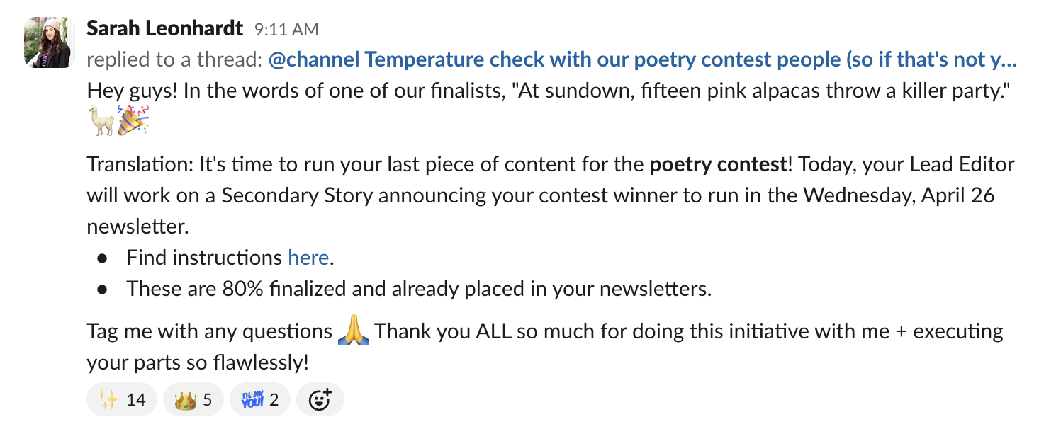 is what I do best, even before I led affiliate marketing efforts. I fundraised $85,043 in reader donations across 23 national news teams. I also organized an annual poetry contest, inviting readers to turn our newsletter into a word bank for an original poem.
